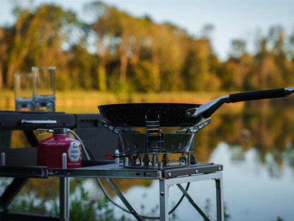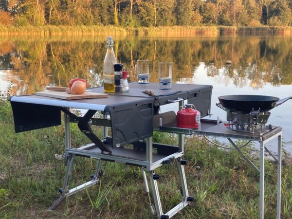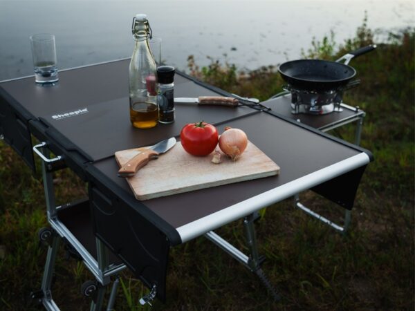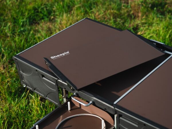 De Sheepie® Chuck Box is een draagbare, multifunctionele buitenkeuken, ontworpen voor gemak en duurzaamheid. De aluminium constructie maakt hem lichtgewicht, robuust en bestand tegen corrosie en extreme temperaturen. Hij is voorzien van een ingebouwd gasfornuis met hoog vermogen en een winddeflector, en klapt automatisch open dankzij gasveren voor een eenvoudige montage. De Chuck Box dient tevens als tafel en wordt geleverd met een op maat gemaakte opbergtas voor bestek, kookgerei en andere benodigdheden. Ideaal voor elke omgeving: de Chuck Box maakt koken onderweg, of het nu op het strand of in de bergen is, eenvoudig, efficiënt en plezierig.