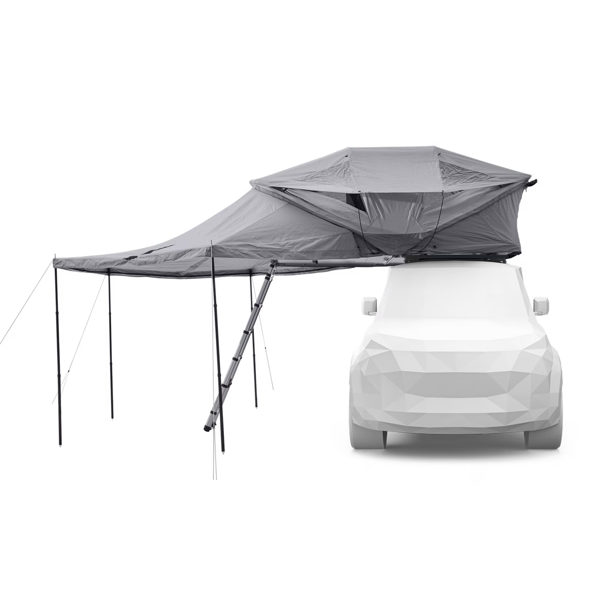 De Thule Approach 2 luifel breidt je daktent uit tot een weerbestendige, beschutte leefruimte. Hij biedt bescherming tegen zon en regen terwijl je vrij in en uit de tent kunt bewegen. Voeg optionele zij- en voorwanden toe (apart verkrijgbaar) voor extra comfort en privacy. De luifel bevestig je snel met een eenvoudige ritssluiting en stevige, in hoogte verstelbare aluminium stokken. De complete set bevat een opbergtas, haringen en scheerlijnen, zodat je hem gemakkelijk kunt meenemen en altijd kunt vertrouwen op een betrouwbare oplossing, waar je avontuur je ook brengt.